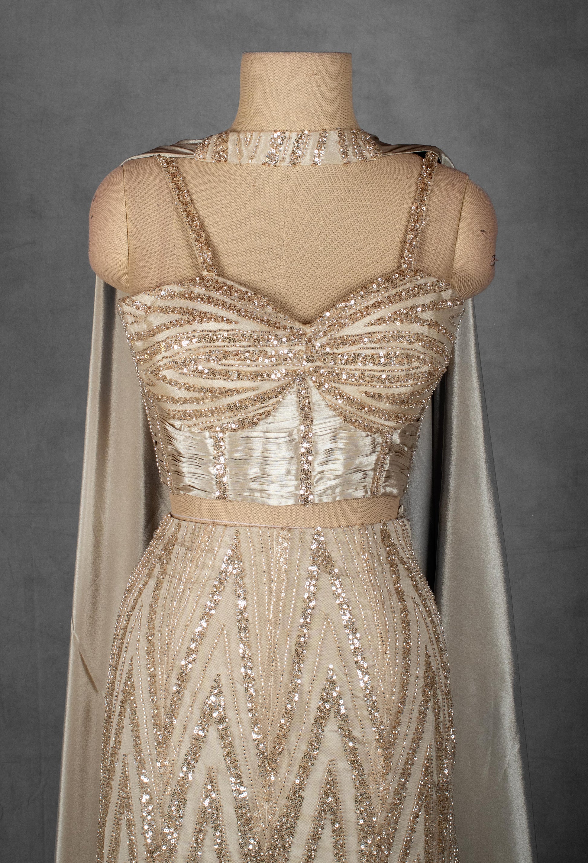 Elevate your evening look with this Champagne Gold Sequin Embellished Lehenga Set by Asma, designed to make you shine effortlessly at every celebration.