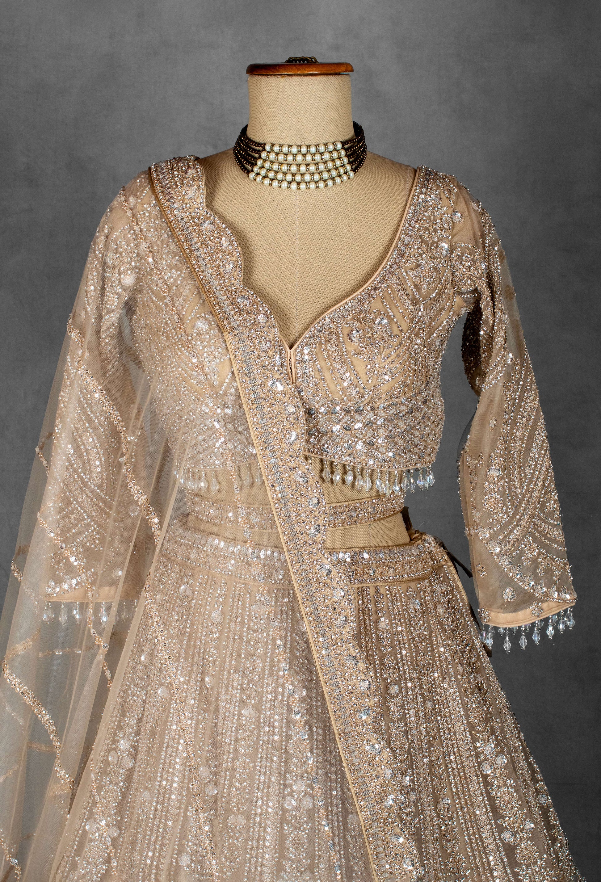 Ideal for wedding receptions, engagement soirées, or festive celebrations, this lehenga radiates timeless beauty and couture sophistication.