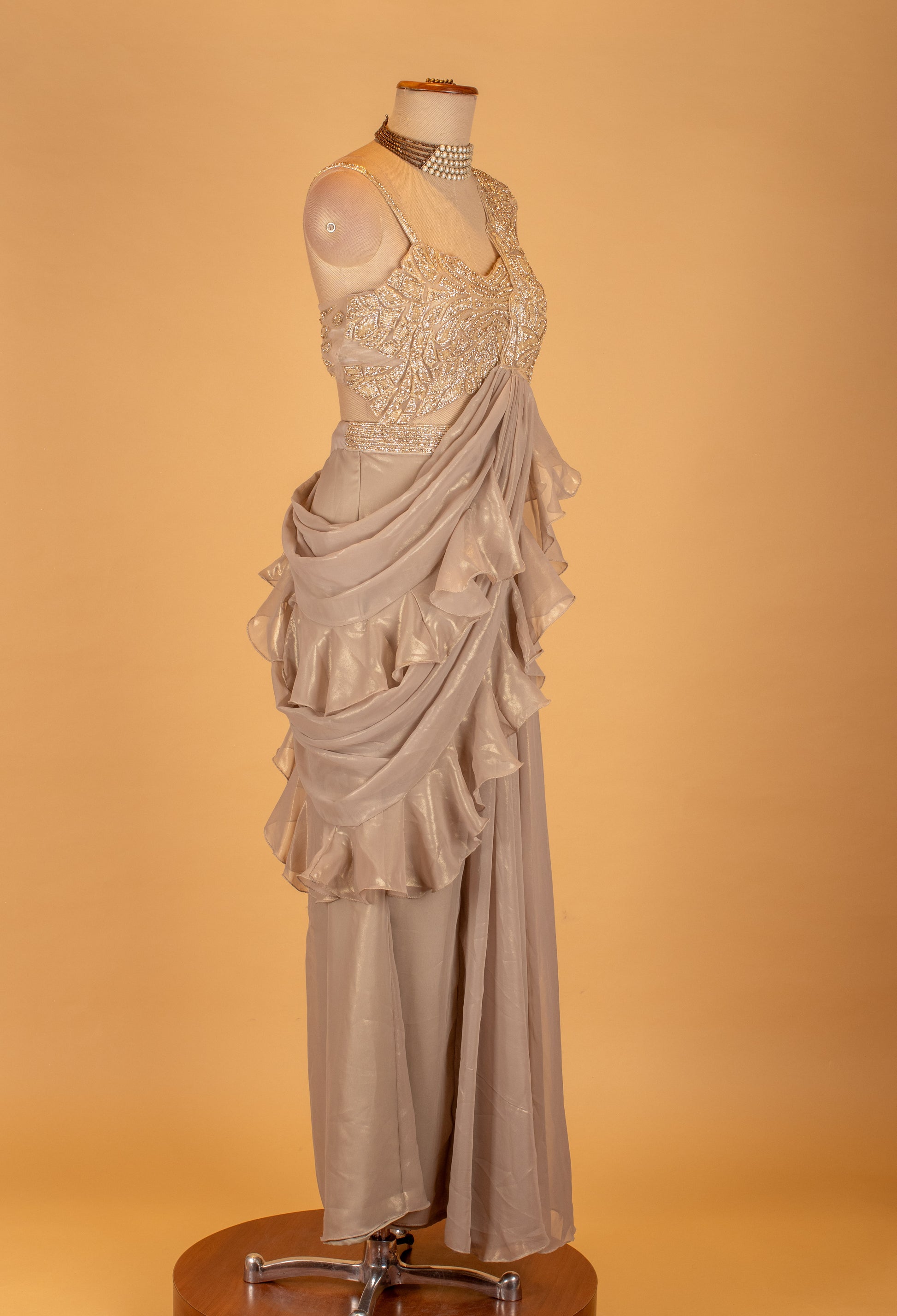 Premium champagne ready-to-wear drape saree