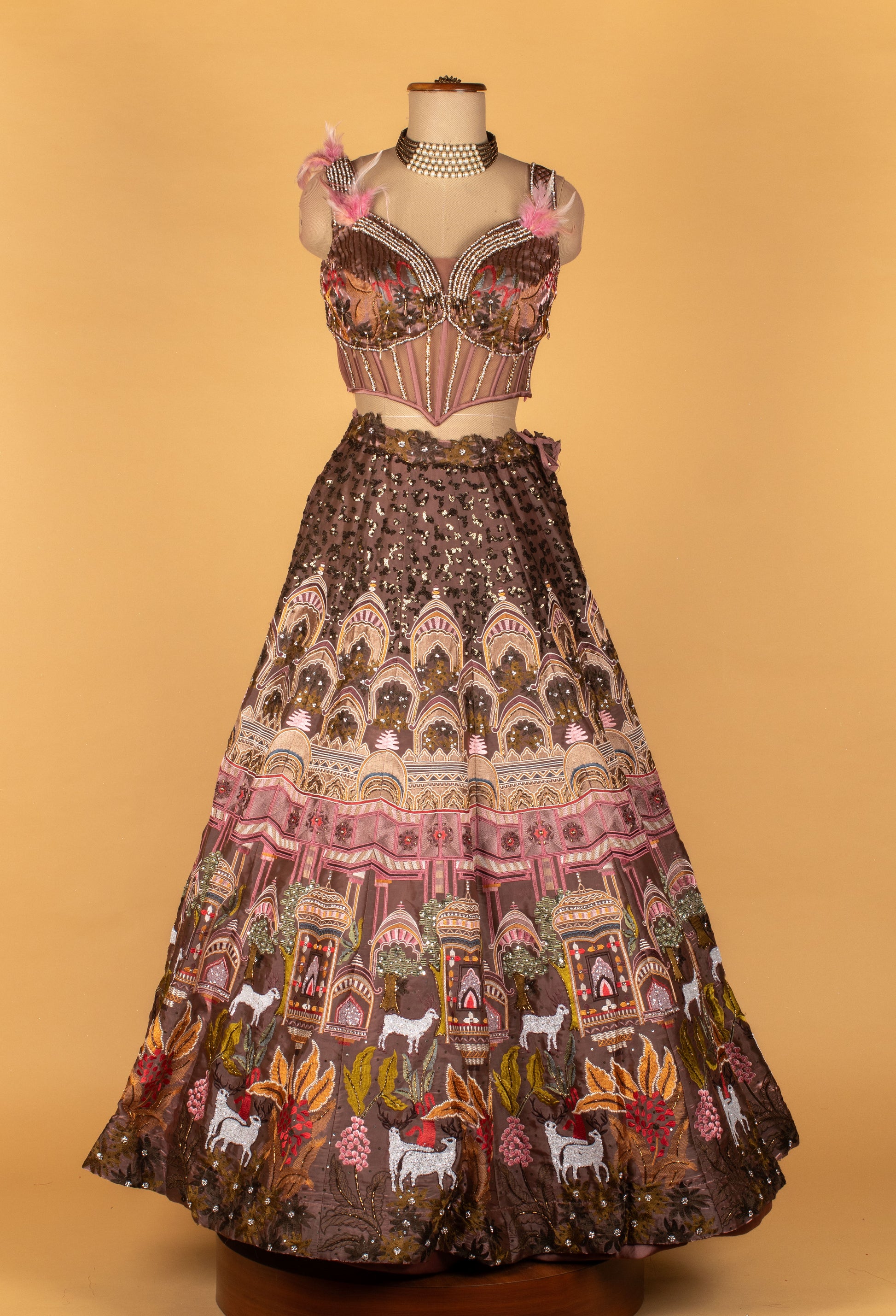 Hand-embroidered lehenga with digital print artwork