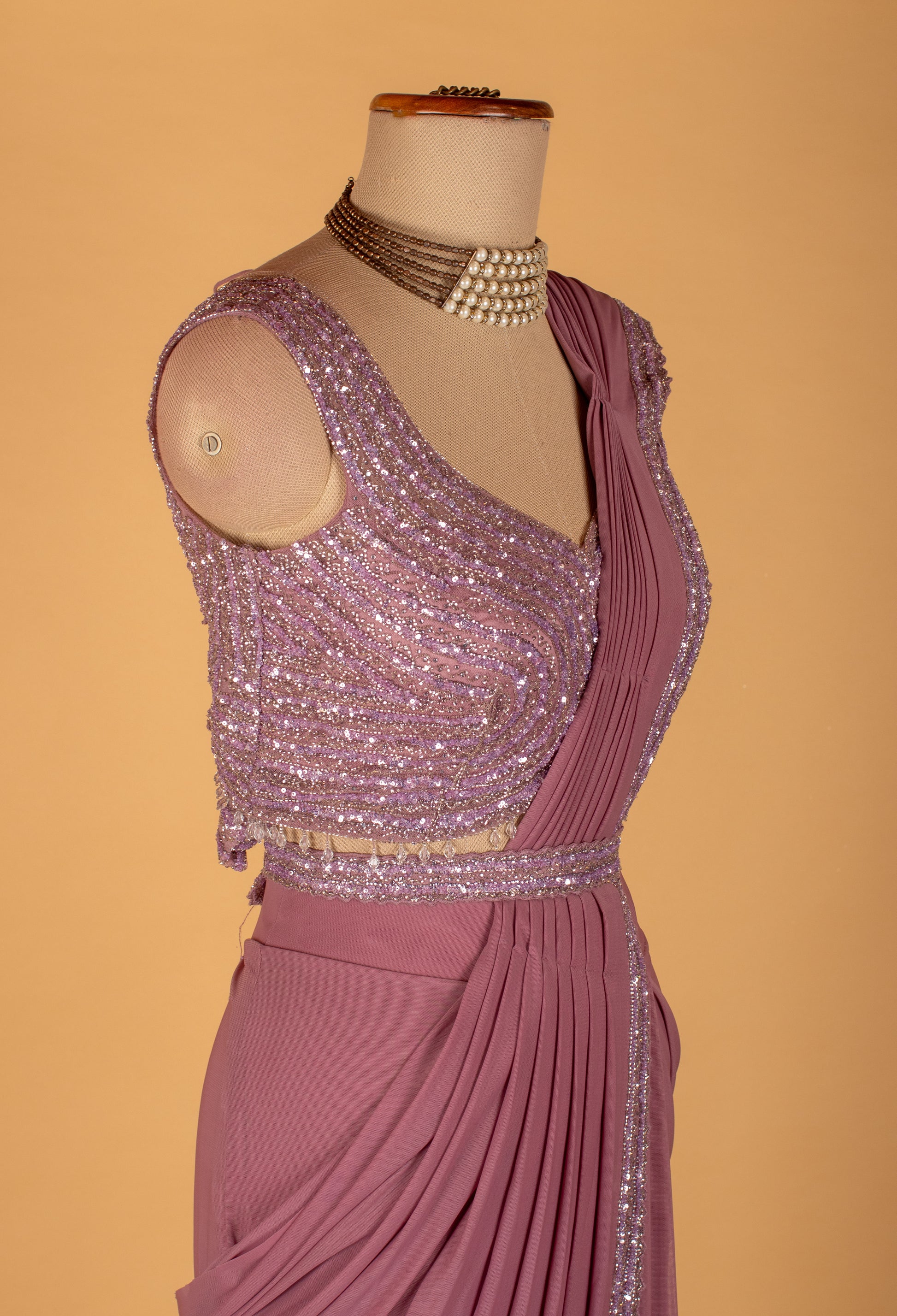Premium dusty rose ready-to-wear drape saree