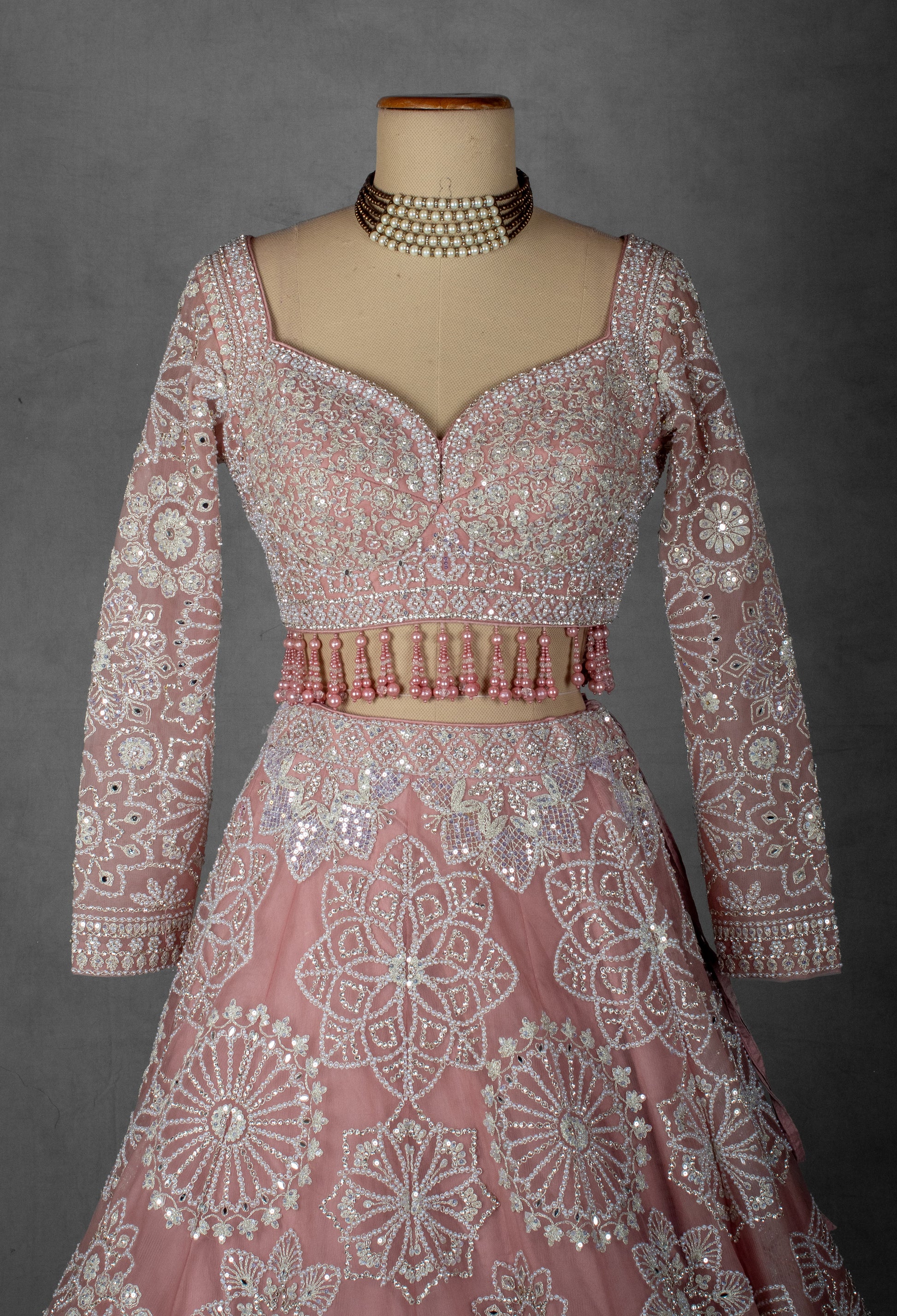 Romantic, ethereal, and timeless — this Dusty Rose Pink Hand-Embroidered Lehenga Set by Asma is a vision of elegance that celebrates modern femininity through exquisite detail and delicate hues.