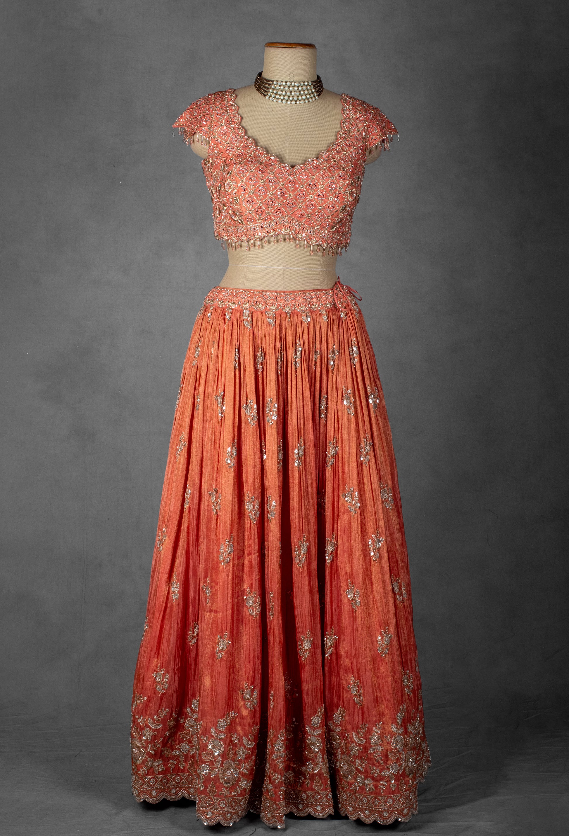 Step into timeless elegance with this Embellished Coral Peach Lehenga Set by Asma, a dreamy ensemble designed to capture the spirit of celebration with grace and glamour.