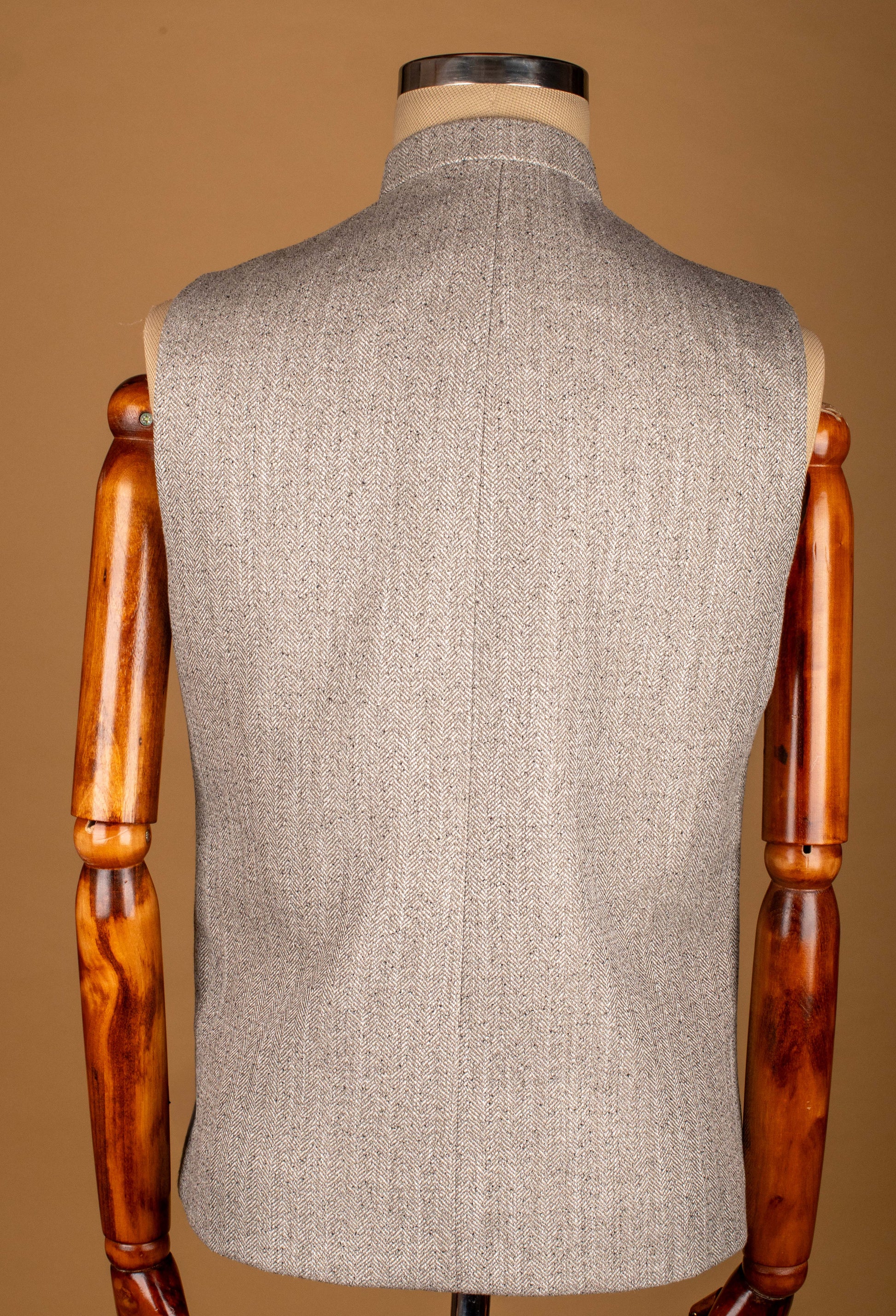 Crafted from premium woven fabric featuring a subtle herringbone texture, this jacket offers a perfect balance of comfort and style. The band collar, button-down front, and multiple flap pockets lend it a utilitarian charm while maintaining a sharp tailored silhouette.