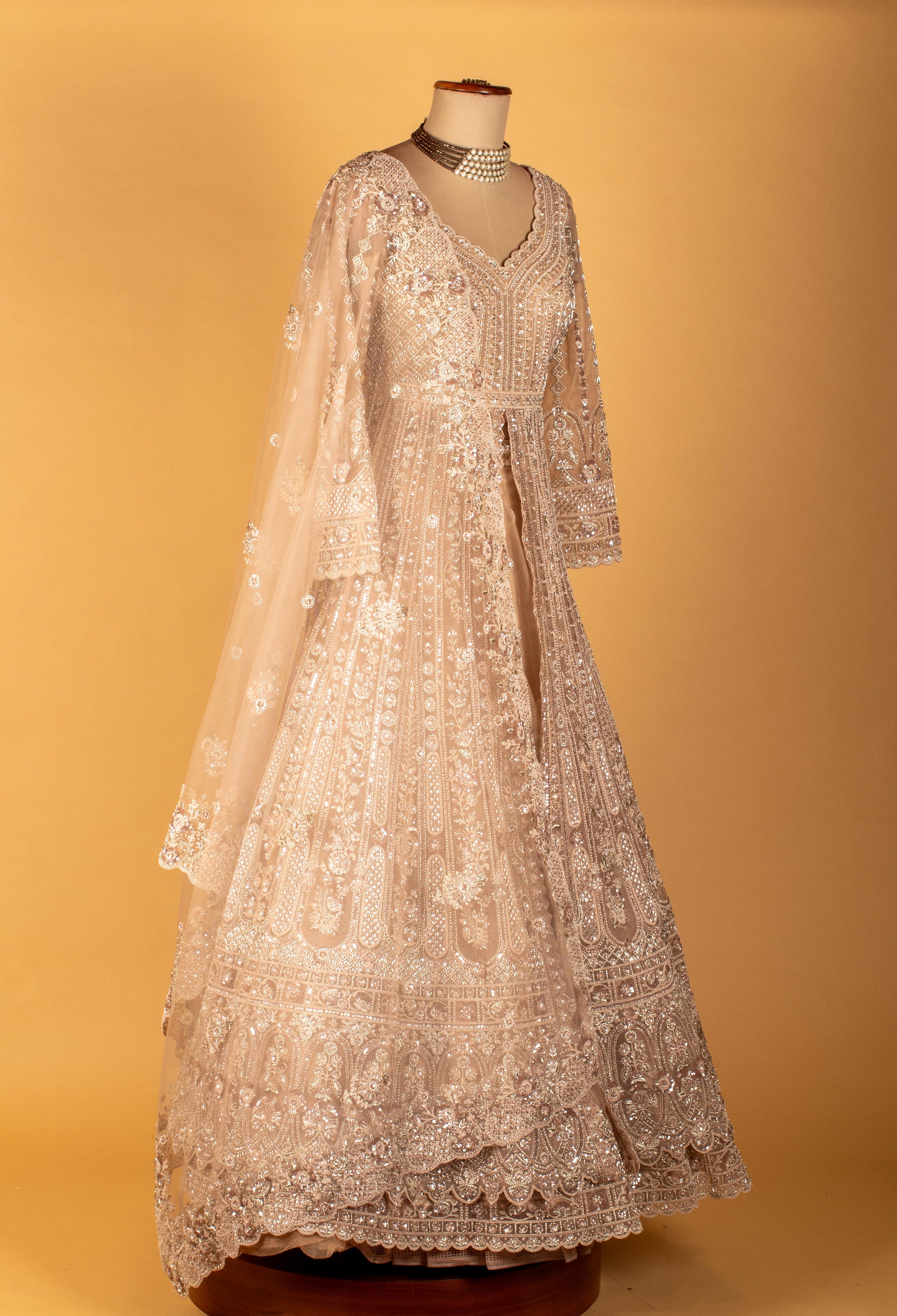 Whether for receptions, engagements, sangeet nights, or grand festive occasions, this ivory masterpiece ensures you shine with sophistication and grace.
