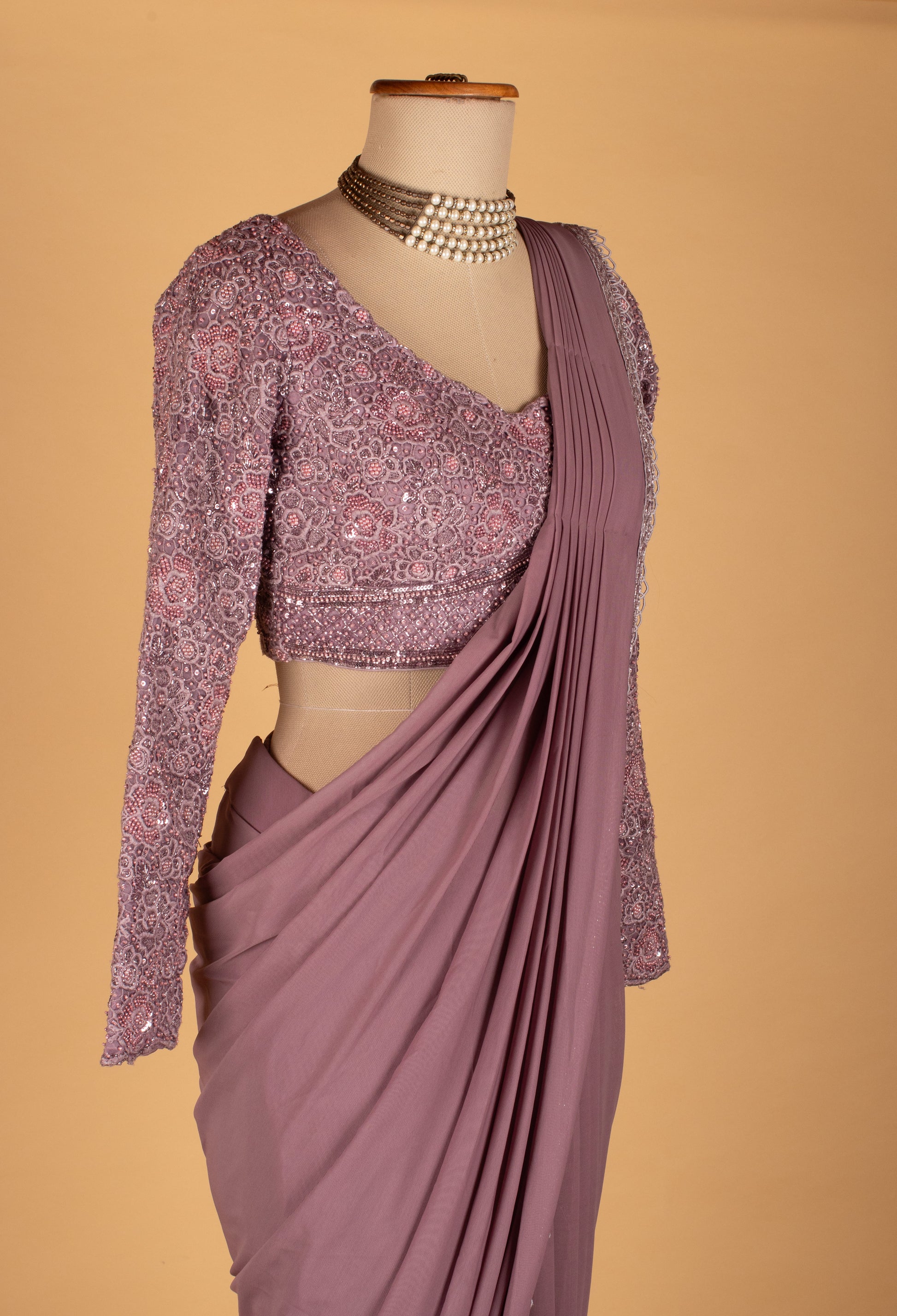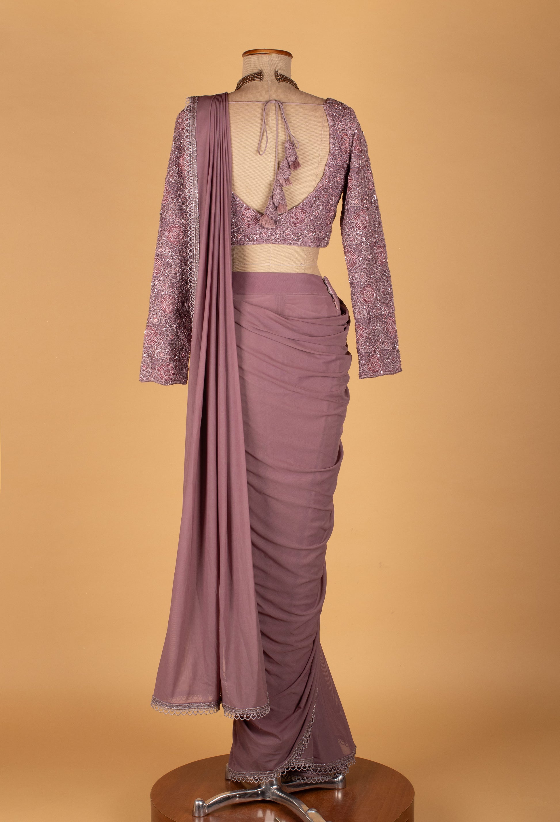 Step into timeless elegance with this stunning Mauve Embellished Drape Saree, designed for effortless glamour and modern sophistication. Crafted in a soft mauve tone, this ready-to-wear saree features a beautifully pre-stitched drape that ensures perfect pleats and a graceful fall every time—no traditional draping required.