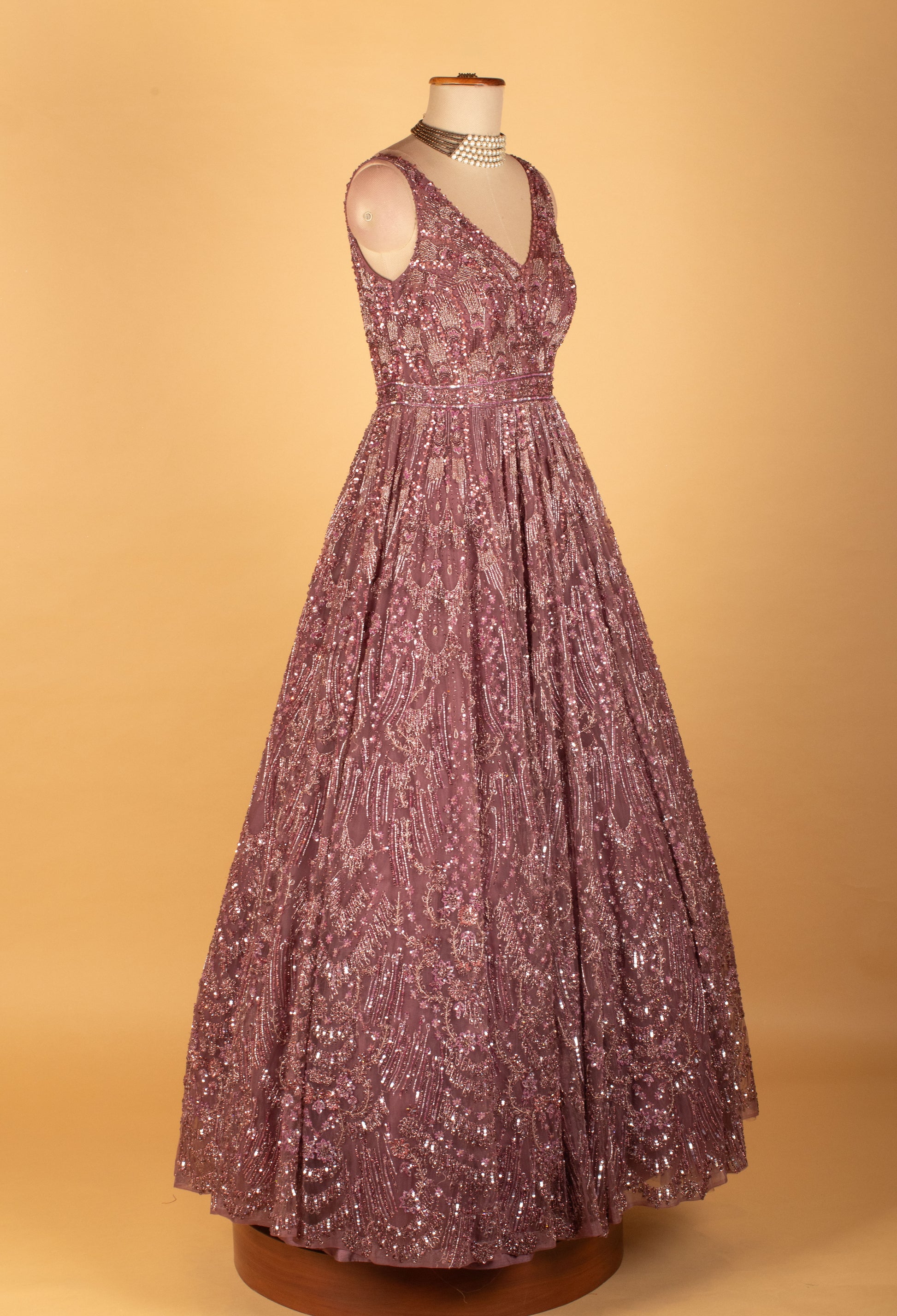 Perfect for receptions, engagement ceremonies, cocktail parties, festive evenings, and special occasions, this mauve gown is a timeless choice for sophisticated styling.