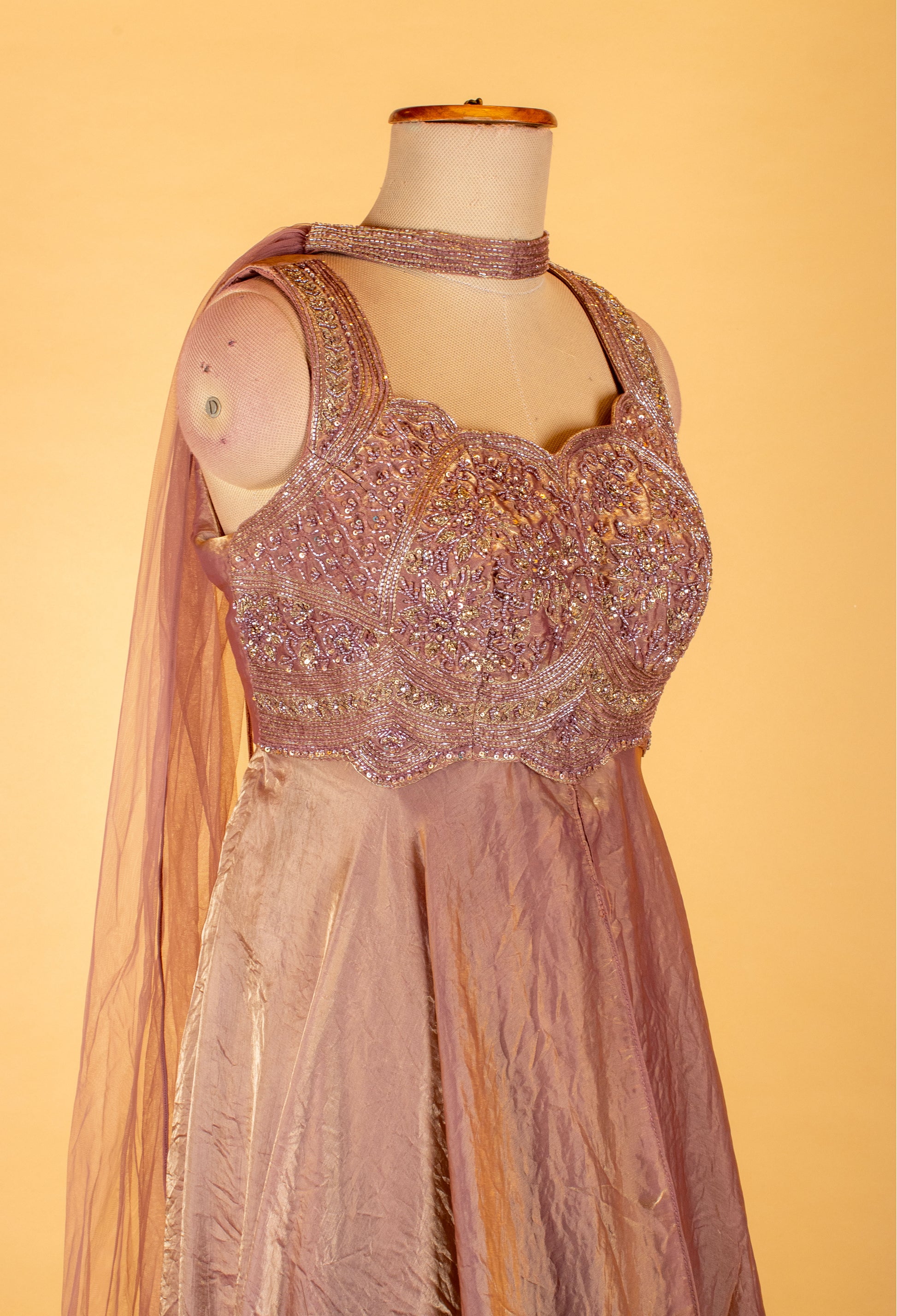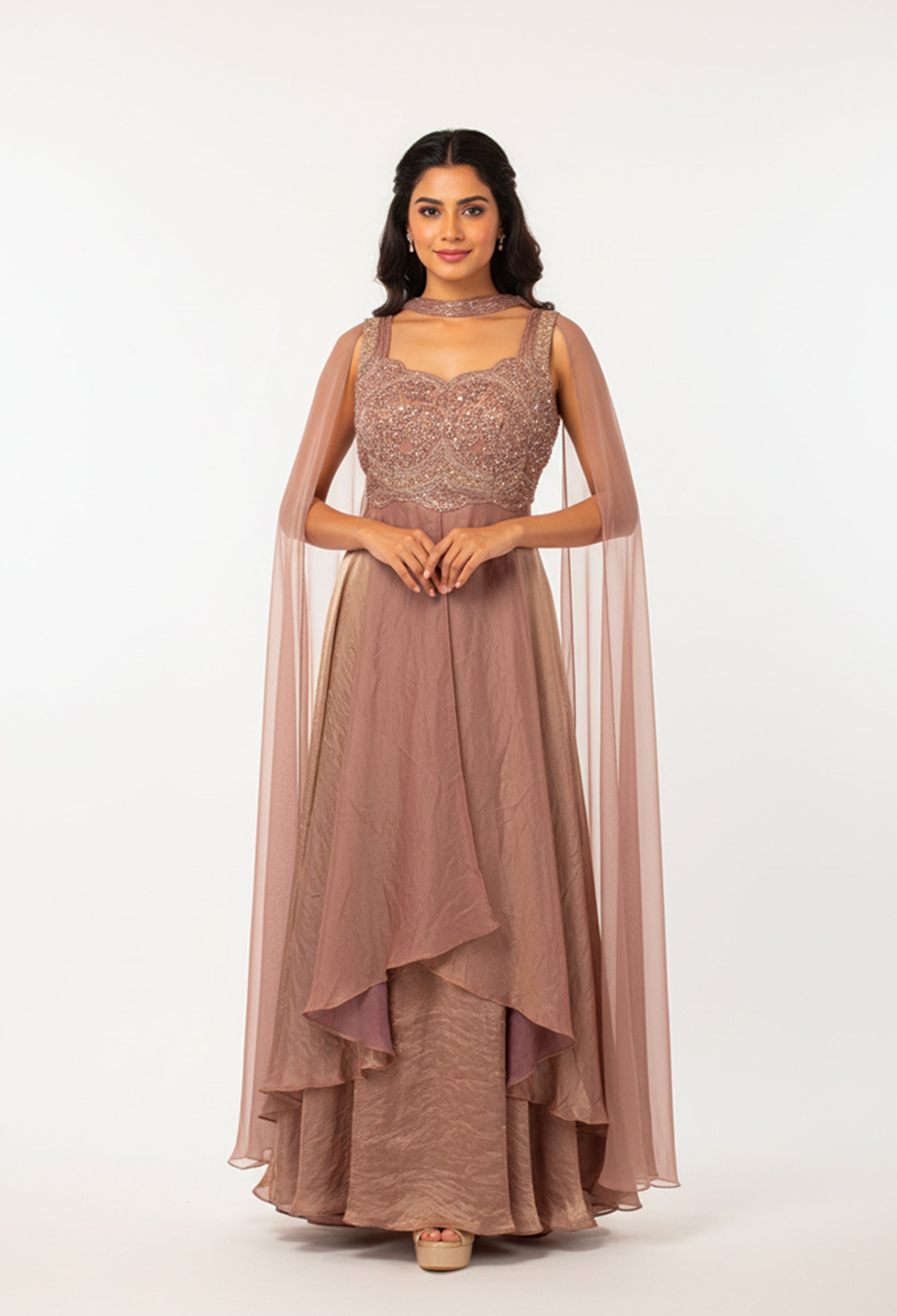 Dupatta: Sheer cape-style overlay with matching details
