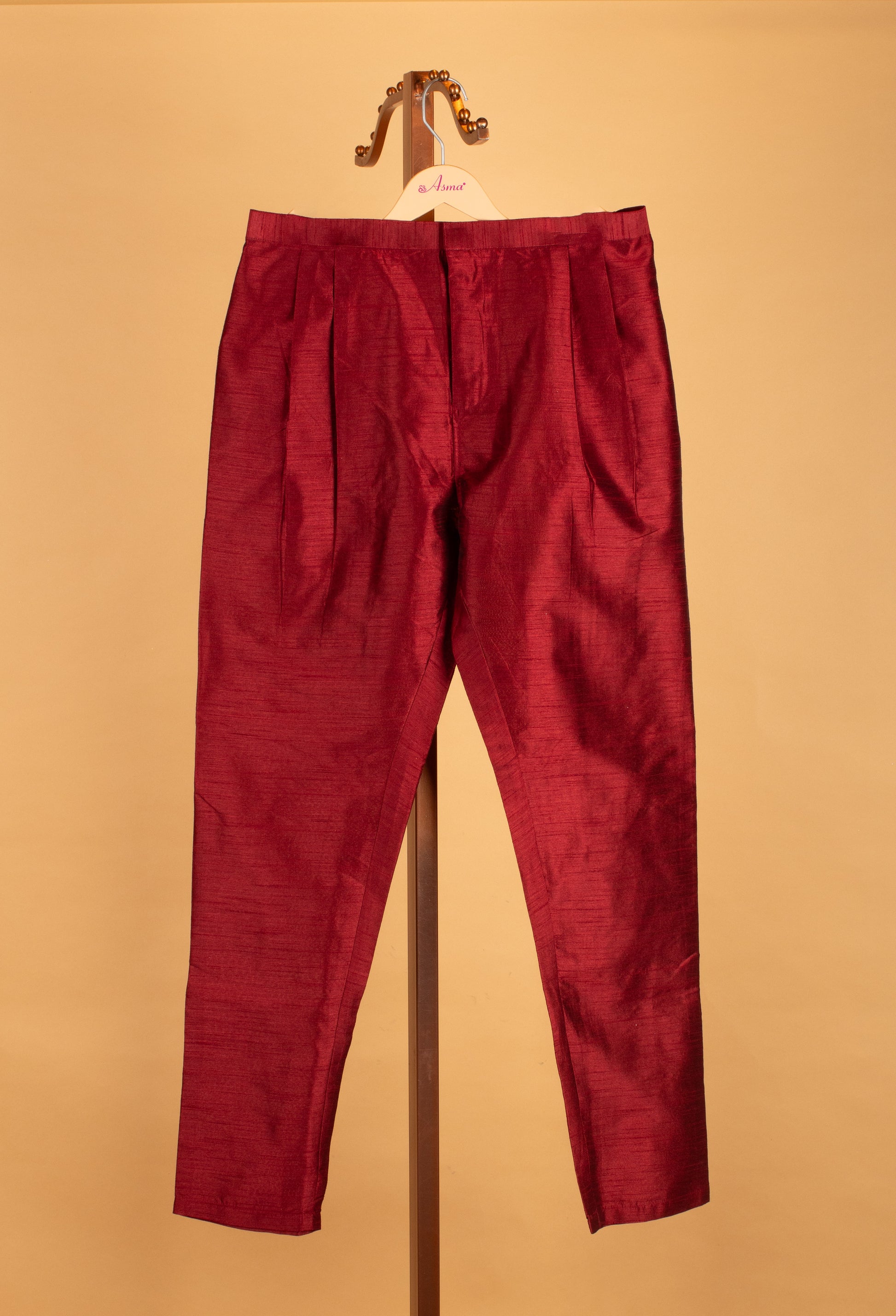 Make a powerful festive statement with this deep maroon embroidered jacket kurta set, crafted for grand celebrations and evening occasions. The jacket features intricate geometric embroidery accented with mirror-style embellishments, creating a striking symmetrical design that reflects rich traditional artistry. Finished with a structured mandarin collar, front opening, and refined detailing, the jacket pairs seamlessly with a matching maroon kurta crafted in a smooth, lustrous fabric. This ensemble is perfect for weddings, receptions, and festive nights where bold elegance takes center stage.