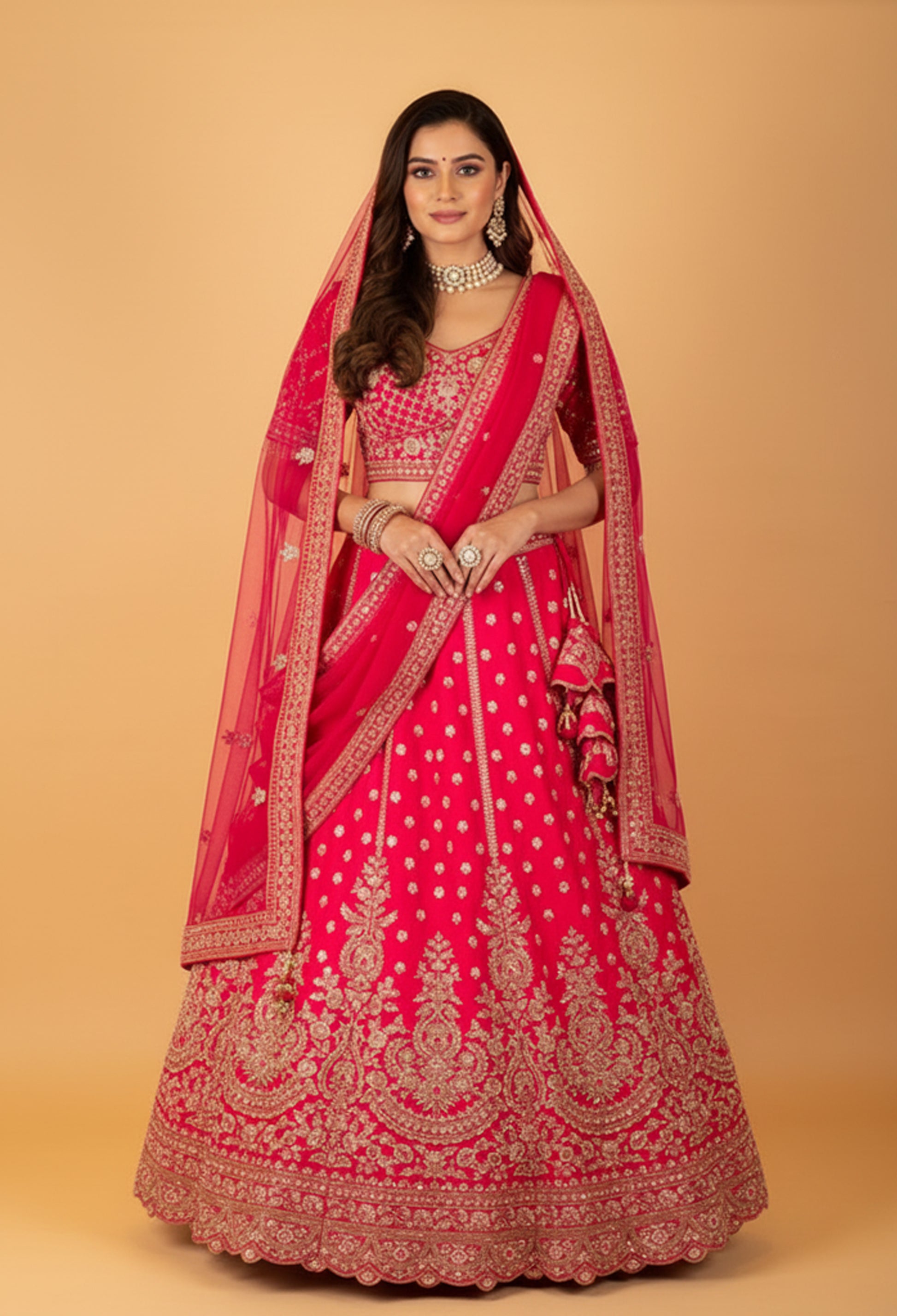 Rich red bridal crop top lehenga set