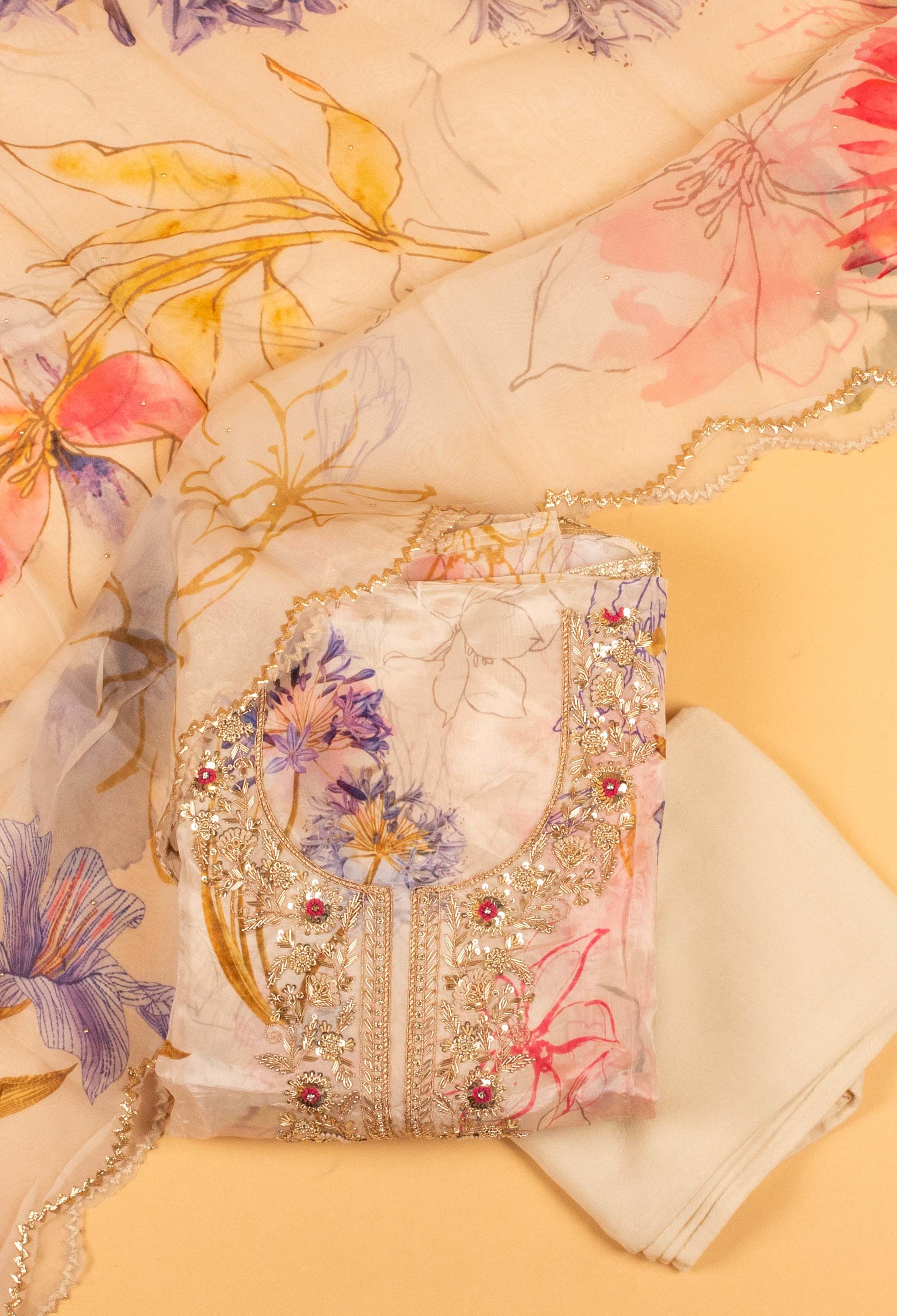 Suitable for salwar suit, straight-cut suit, or churidar