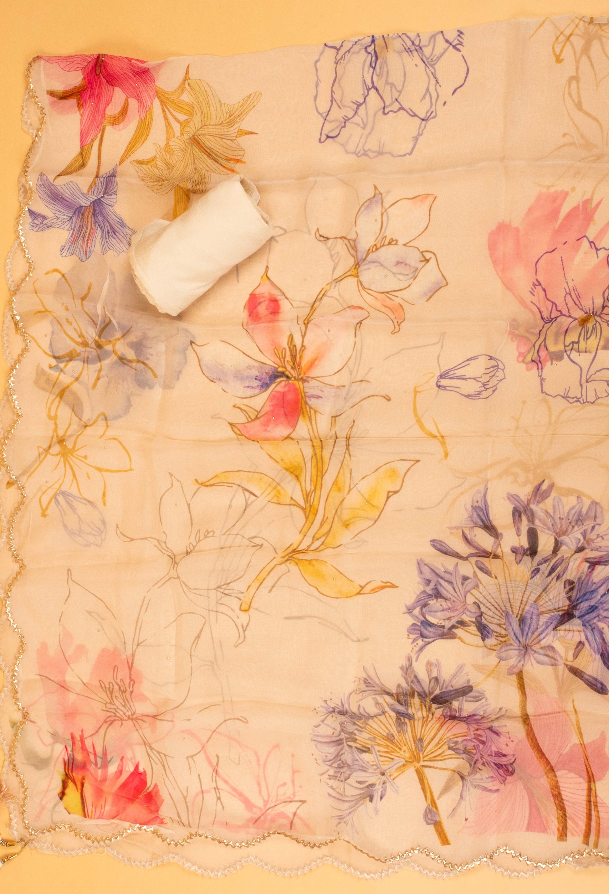Elegant off-white base with pastel floral print
