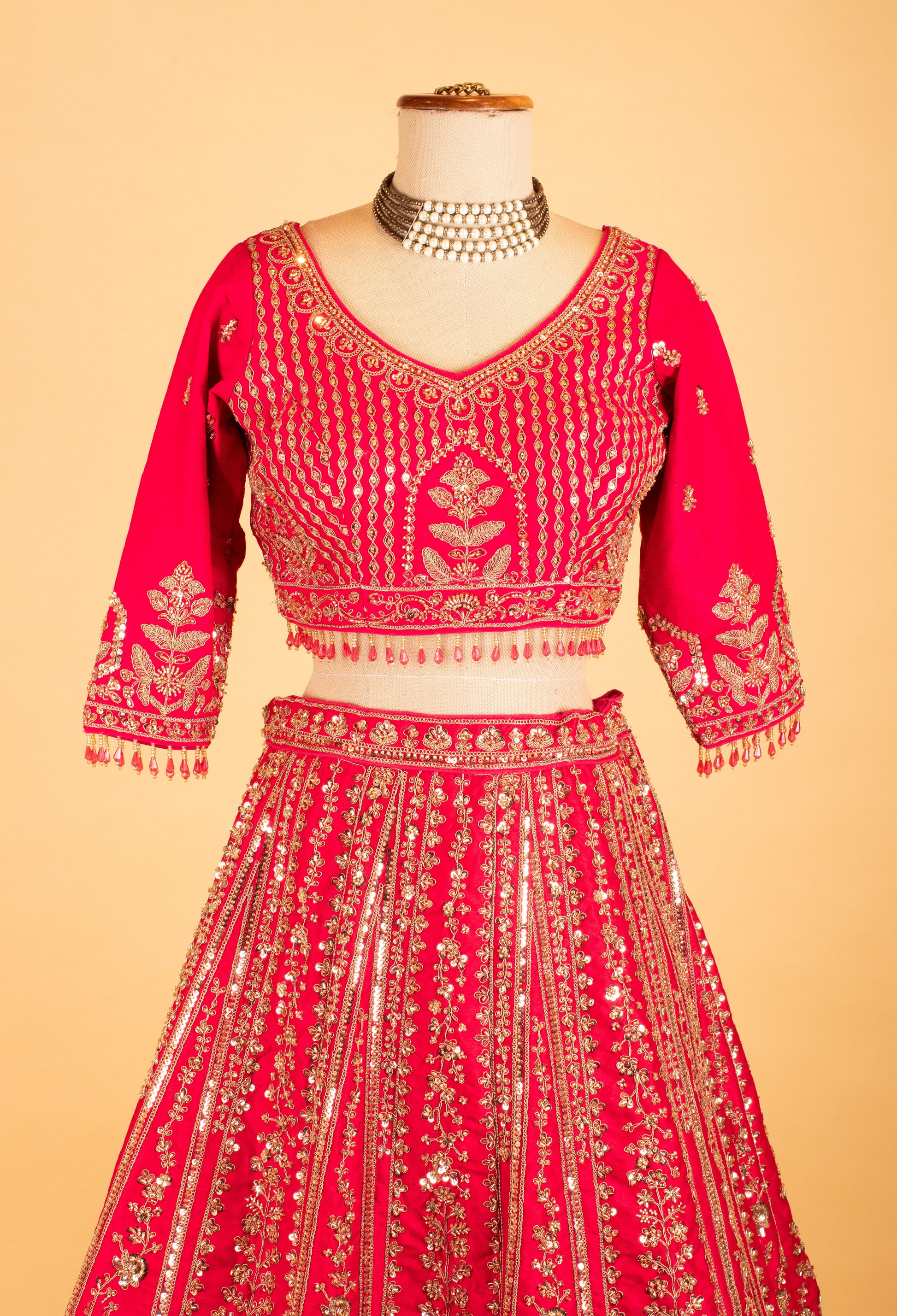 Rani pink bridal lehenga with fully hand-embroidered fine details